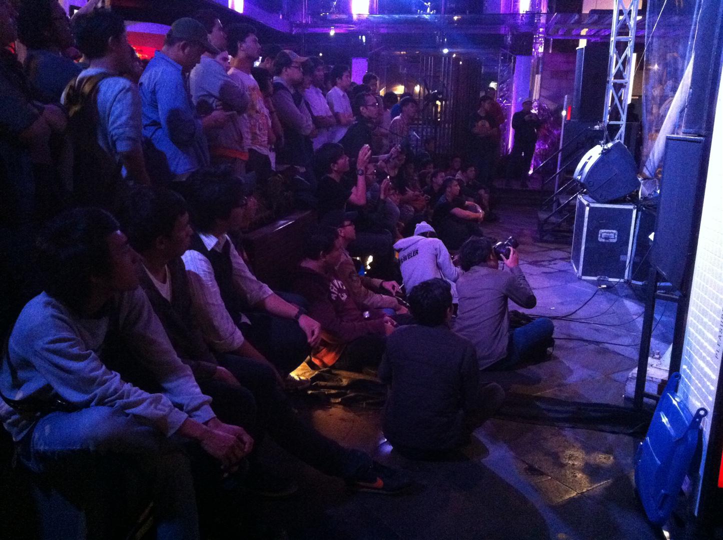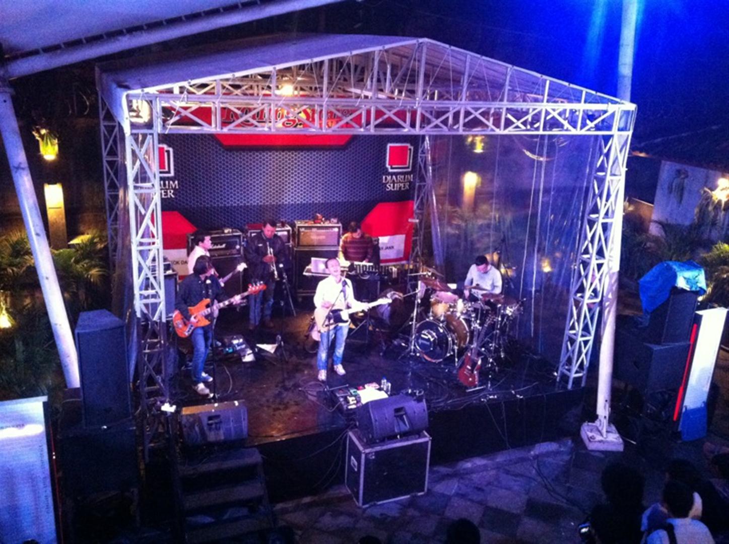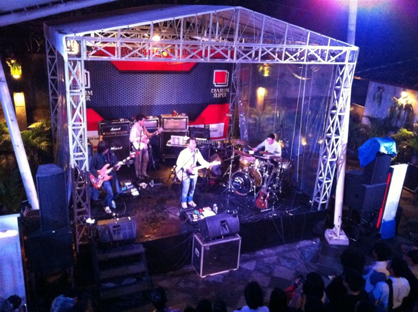 Panggung Rolling Stone Cafe malam itu lumayan sesak di depan. Kami memutuskan untuk mencoba peruntungan di lantai atas. Kami datang ketika Efek Rumah Kaca sedang memainkan lagu pembuka. Telat, tapi masih banyak lagu menunggu di depan.