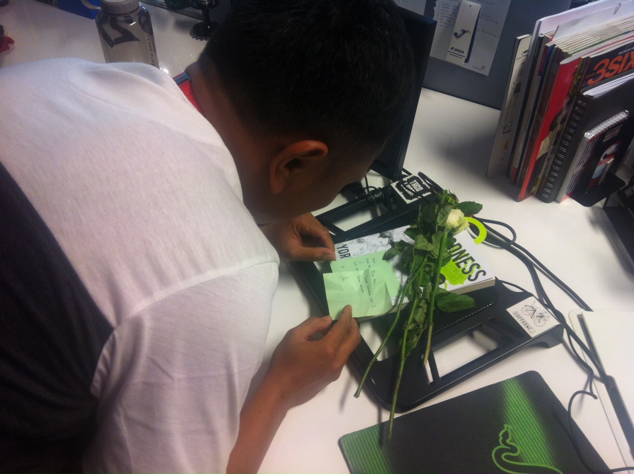 Ketika tuduhan mereda, Ibnu nampak masih gelisah di mejanya. Mungkin ia benar-benar penasaran siapa yang mengiriminya bunga. Saya dan Satria yang ada di sekitarnya, memilih untuk tidak peduli dengan kegiatan itu. Padahal, kami memantaunya.