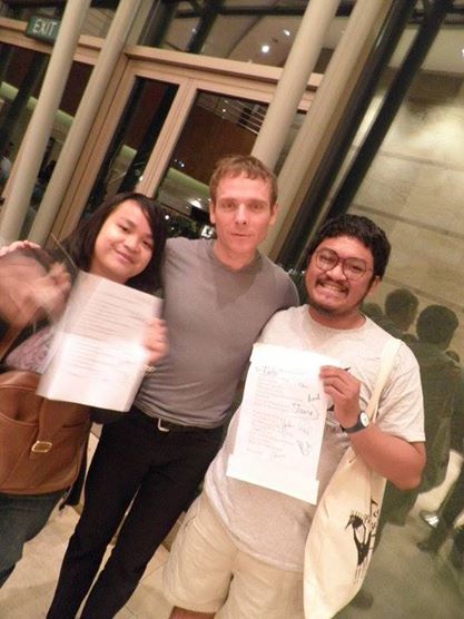 Yang terakhir adalah Stuart! Haha. Sepertinya, semua orang inginnya bercengkerama dengan dirinya. Saya sendiri memilih untuk tidak terlalu antusias. Tapi Abazh, rasanya antusias sekali. Akhirnya, kami mengambil gambar berdua dengan dia.