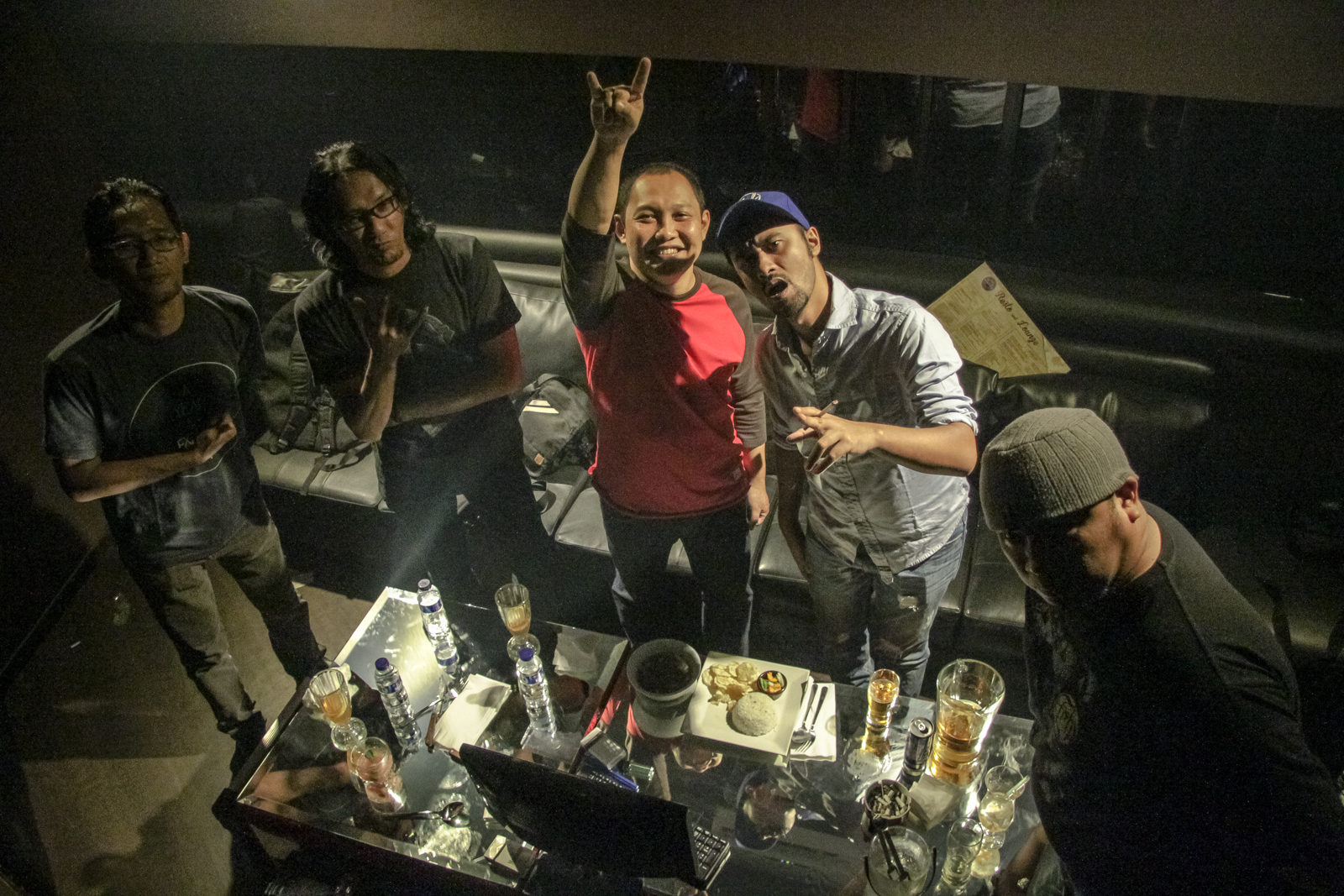“Di ujung sana, ada Udhi. Dia merupakan orang yang paling suka punya konflik sama yang lain untuk urusan musikal. Setiap yang lain bilang apa, dia pasti selalu keluar dengan pandangan yang lain. Tapi, kadang itu yang bikin band ini keluar dengan output yang bagus,” pujinya pada Udhi yang bersembunyi di belakang set drum.