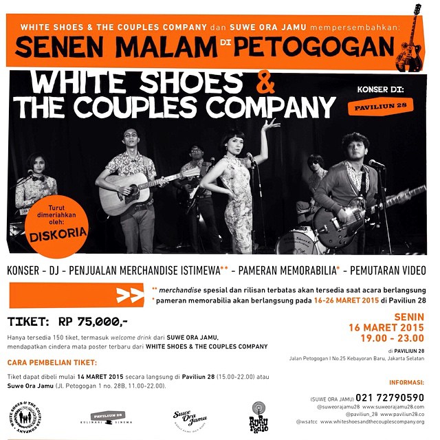 If you wanna support the band you love in their journey to see the world, this is the time. Sampai jumpa di Petogogan besok malam. Doakan semoga lelangnya berlangsung lancar dan bisa beneficial untuk perjalanan White Shoes and the Couples Company ke Australia. (pelukislangit)