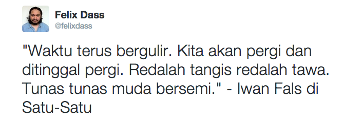 Hidup berjalan ke depan. Kata Iwan Fals di lagu Satu-Satu begini:
