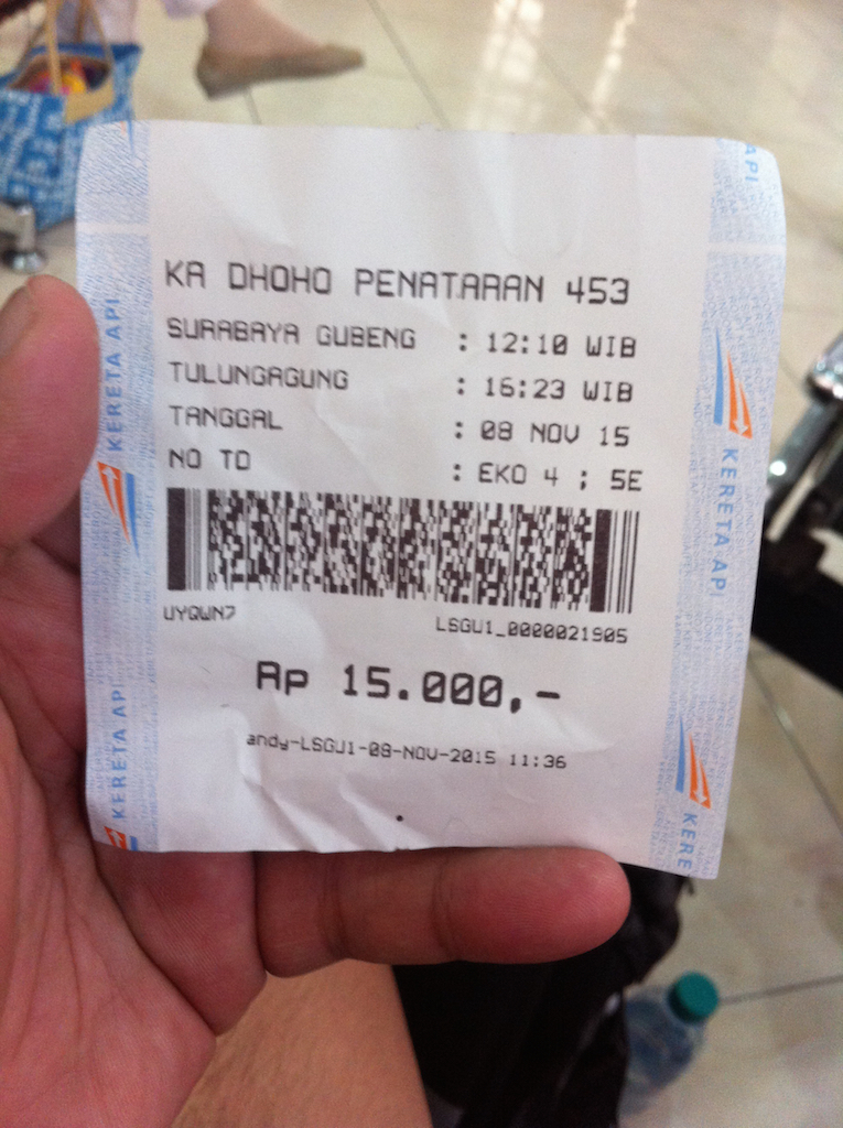 Perjalanan pekerjaan membawa saya ke Tulungagung. Perjalanan menantang menggunakan kereta api lokal Dhoho/ Penataran selama empat setengah jam dari Surabaya mengawalinya. Menaiki kereta kelas ekonomi tanpa kereta makan di jam makan siang yang terik sepertinya lumayan membosankan. Tapi belum apa-apa, saya sudah salah sangka.