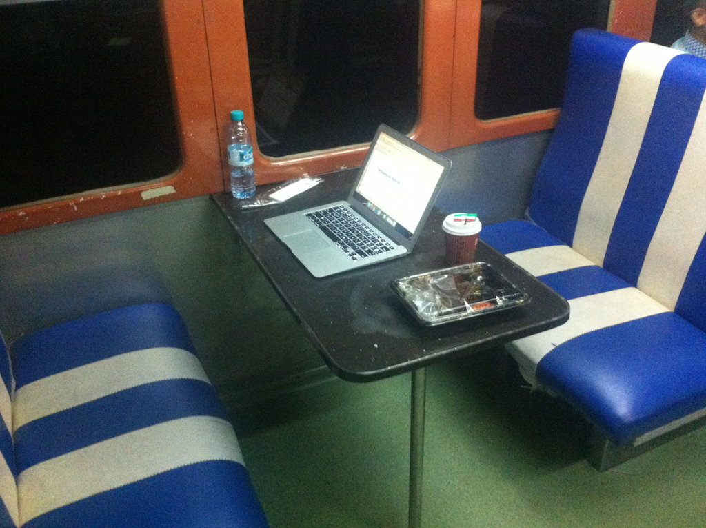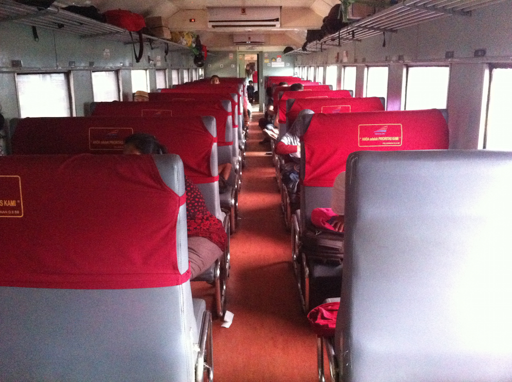 Kereta kelas ekonomi itu sempit. Kursinya tegak, harus mengatur posisi duduk dengan orang di seberang. Sekilas, nampak tidak nyaman. Tapi karena tidak punya pilihan, jadilah saya harus menjalani pengalaman ini. Untuk kemudian dibuktikan bahwa saya salah besar menjalaninya dengan berat hati.