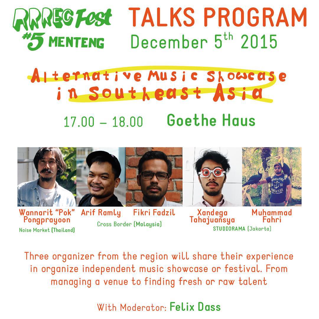 Saya harus berterima kasih pada RRREC Fest #5. Pada 5 Desember 2015 kemarin, ada satu kesempatan yang luar biasa berharga mampir; menjadi moderator diskusi bertajuk “Alternative Music Showcase in South East Asia” yang jadi salah satu mata acara di festival tersebut.