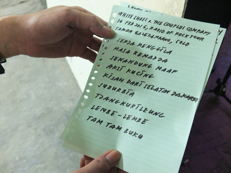 Pengamanan polisi juga spesial. “Ternyata karena besoknya ada pelantikan pejabat kepolisian, mereka nggak mau ambil resiko, Lix. Dikasih pilihan, acaranya suruh mundur atau kami menjaga dengan kekuatan seperti ini,” cerita Indra Ameng, manajer White Shoes and the Couples Company. Akhirnya, polisi mengambil alih sejumlah elemen pemeriksaan penonton. Total, mereka menempatkan sekitar 35 orang personil untuk mengamankan acara. Berlebihan sih, tapi daripada disuruh mundur acaranya?