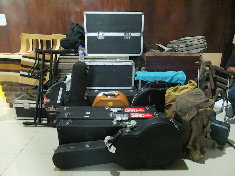 Kami tiba super pagi di kota itu. Venue pertunjukan dan hotel tempat rombongan beristirahat, hanya dipisahkan sebuah parkiran. Enak, karena berarti tidak ada proses untuk berpindah dari hotel ke venue. Di Malang, karena urusan logistik model begini, kami nyaris melewati waktu yang disepakati dan jadi akuarium terbuka ketika harus membelah antrian penonton yang sudah berkerumunan di depan gedung pertunjukan. Situasi seperti itu, tidaklah enak.