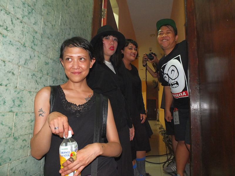 “Inilah format yang sebenarnya, kami biasanya kalau ke Jakarta karena terpentok budget, jadi tidak pakai pemain drum,” terang Eki Tresnowening yang malam itu membawa oleh-oleh sebuah kardus isi dua belas botol Anggur Merah. Lumayan, untuk merasakan panas Surabaya yang sesungguhnya.