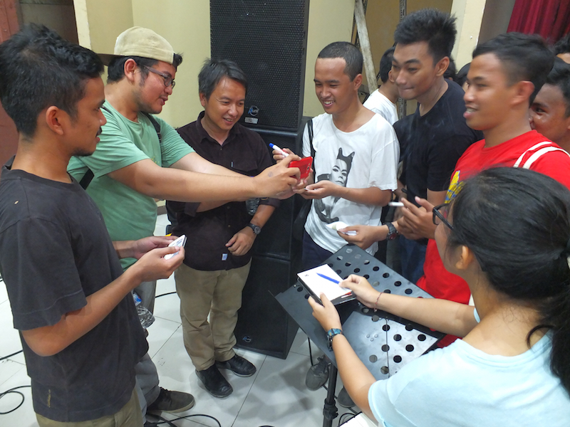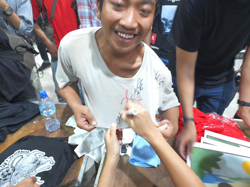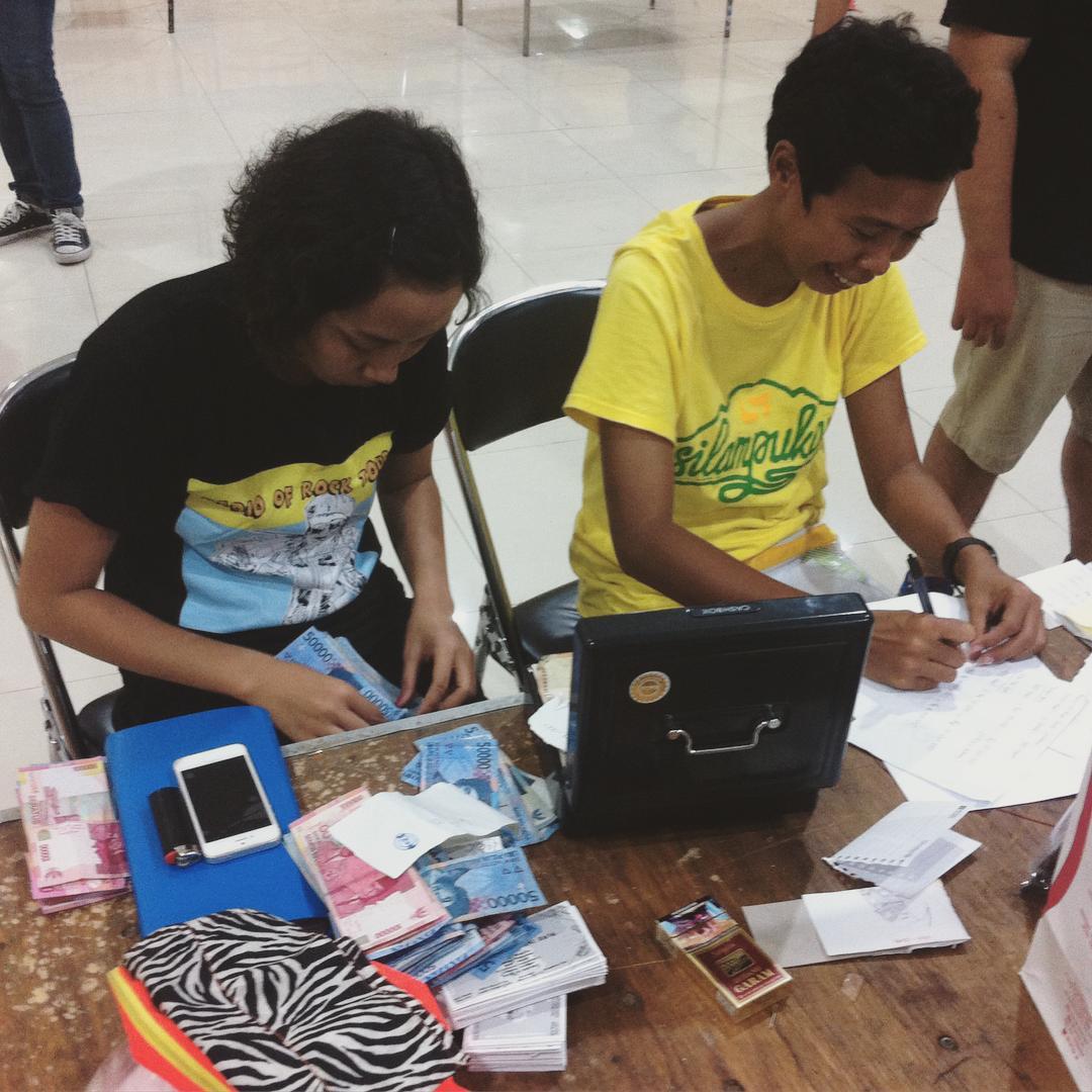 Di ujung acara, ia masih dengan sigap menghitung pemasukan yang ada bersama Anitha Silvia, seorang teman baik dari SatsCo yang menjadi co-organiser tur ini di Surabaya.