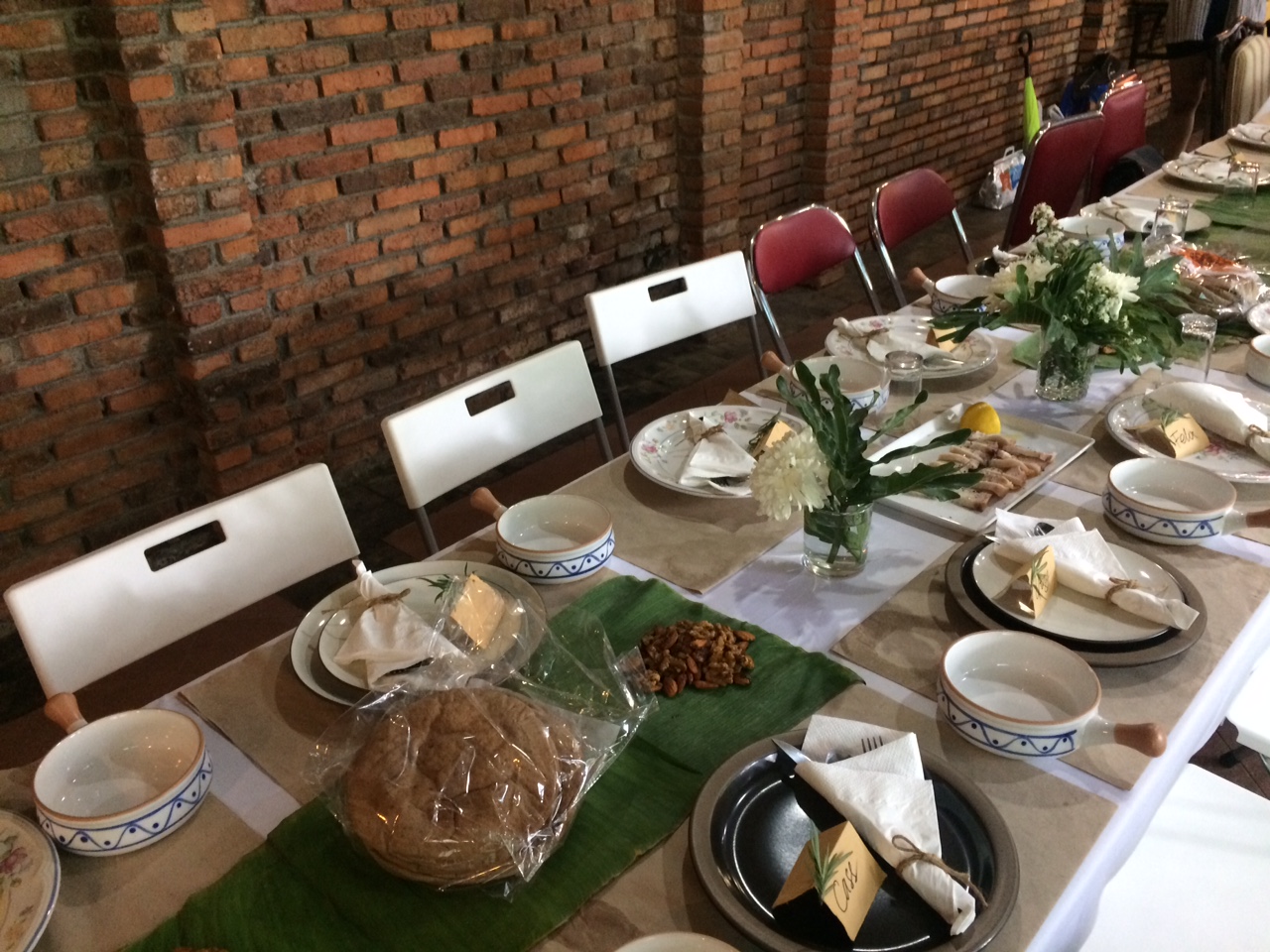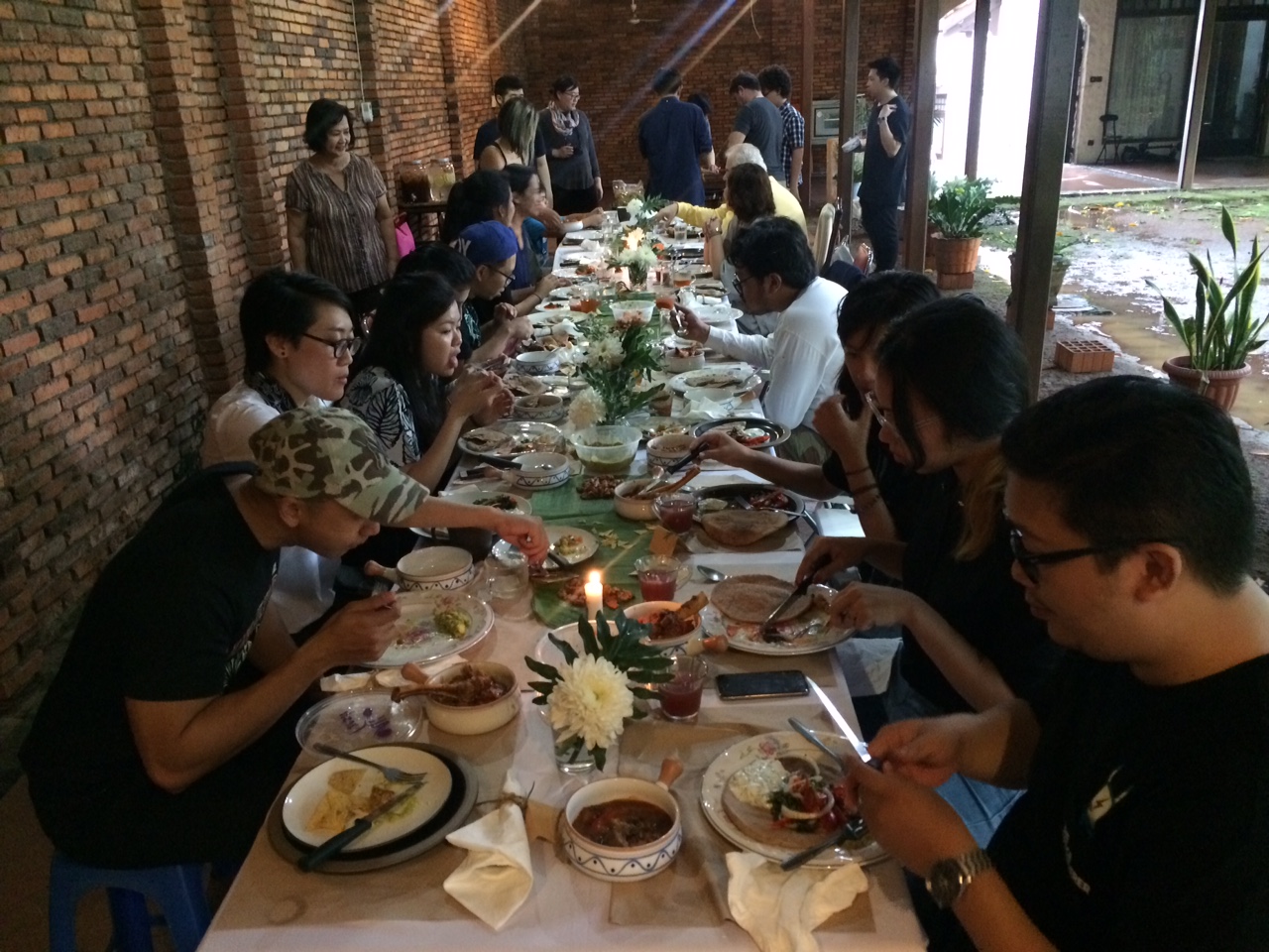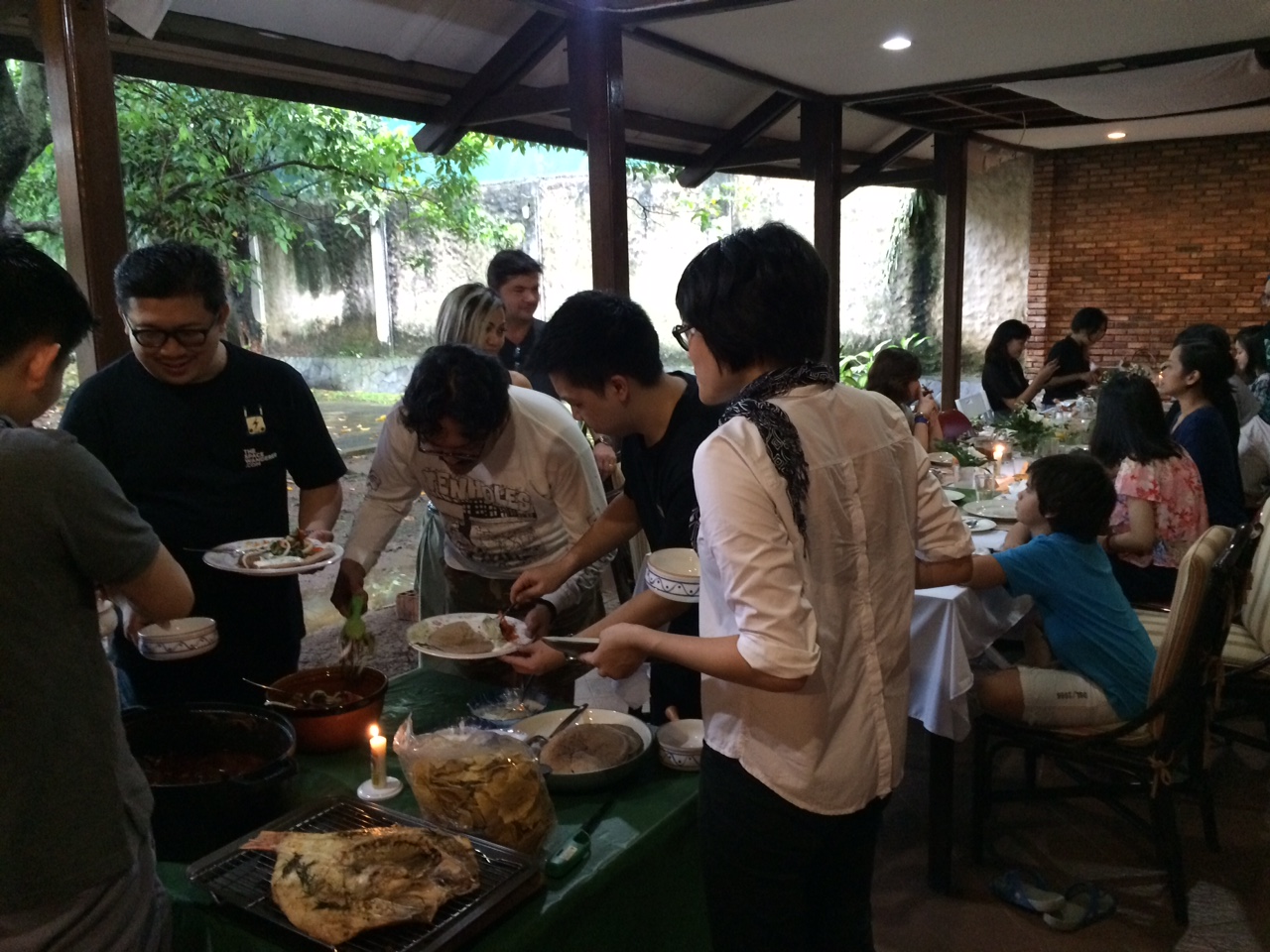 Kami tiba di lokasi sedikit lewat dari waktu yang ditentukan. Sudah ada beberapa orang. Pemandangan yang ada di depan mata, langsung menggugah selera. Cilandak yang masih hijau, rumah besar dan teras samping yang bisa menampung banyak kegiatan. Meja sudah tersaji dengan baik, pengaturan piring telah dilakukan hidangan sedang masuk tahap finalisasi.