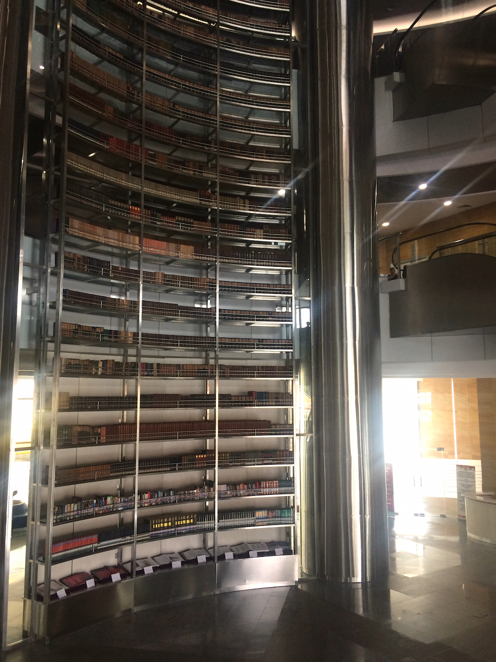 Dua puluh empat lantai yang bisa dikunjungi menampung banyak sekali buku (dan sejumlah materi audio visual) dan tentunya berbagai kepentingan. Letaknya di pusat kota, di deretan balaikota, menambah gurih kenyataan.